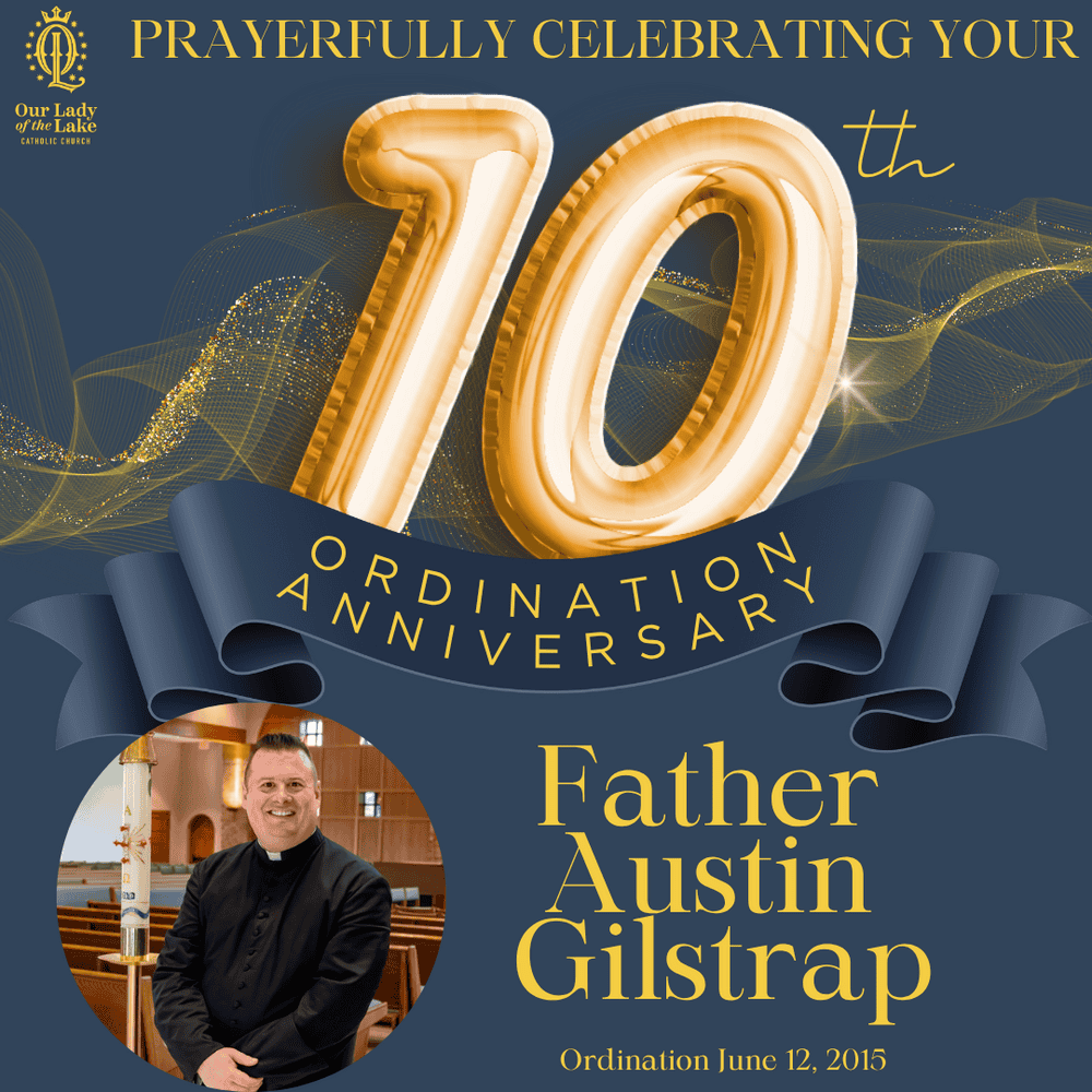 On Thursday, we joyfully celebrate the 10th anniversary of Father Gilstrap’s ordination to the priesthood! Ordained on June 12, 2015, at the Cathedral of the Incarnation, Father Gilstrap has spent the past decade faithfully serving God’s people. We give thanks for his generous “yes” to the priesthood and for the many ways he continues to lead, teach, and draw our parish family closer to Christ. May God bless him abundantly in the years to come!